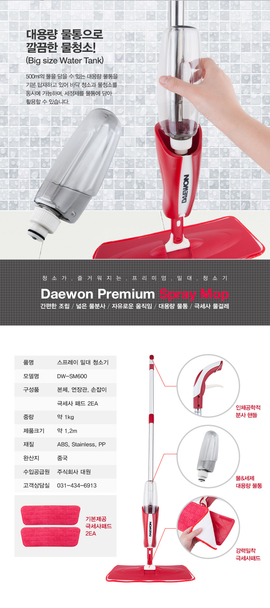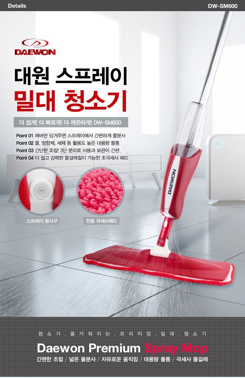 대원 스프레이 밀대청소기 물걸레청소기 물분사 극세사패드포함 DW-SM600