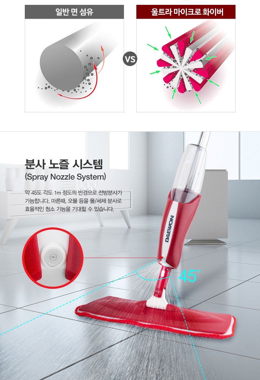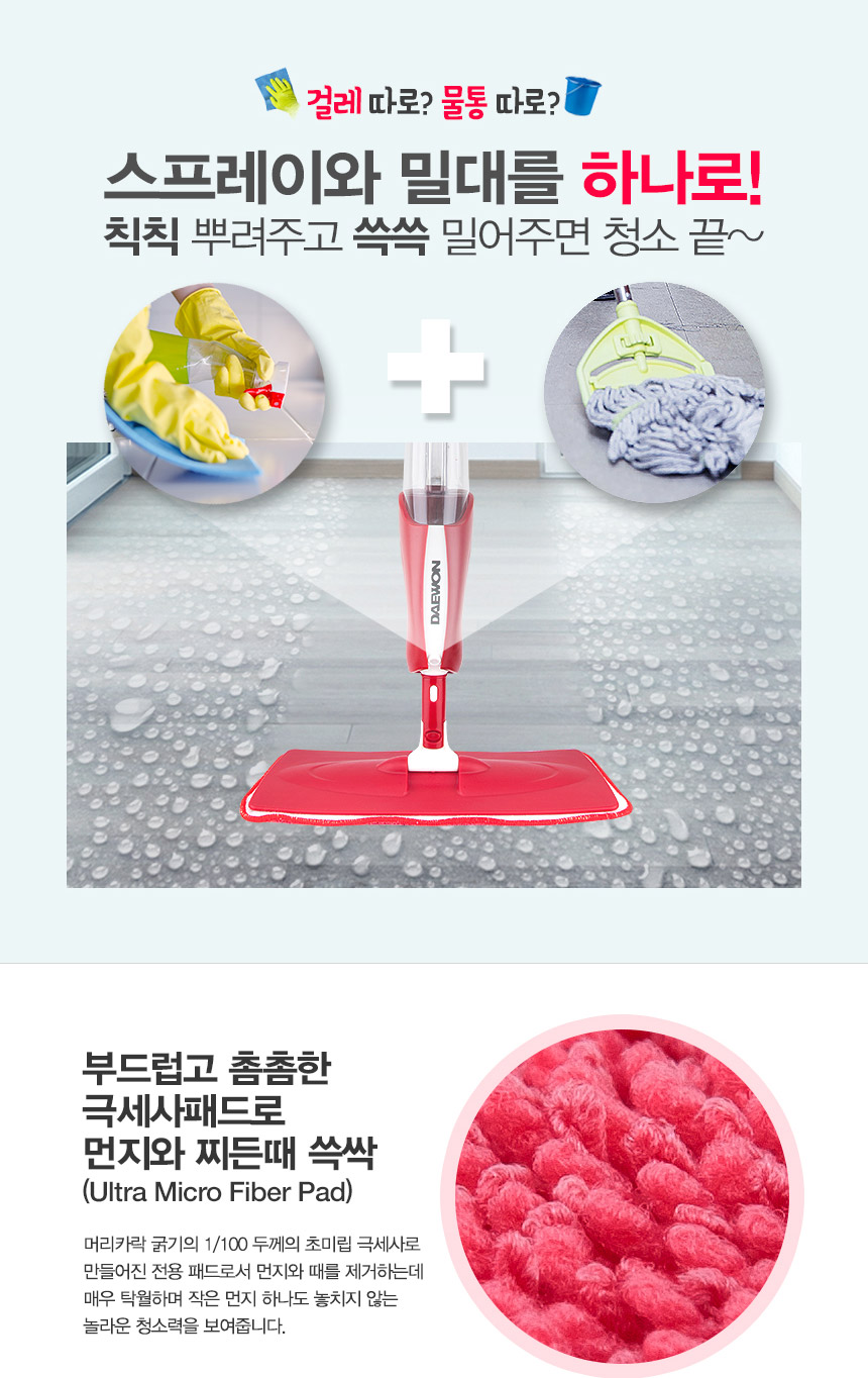 이미지 확대보기대원 스프레이 밀대청소기 물걸레청소기 물분사 극세사패드포함 DW-SM600